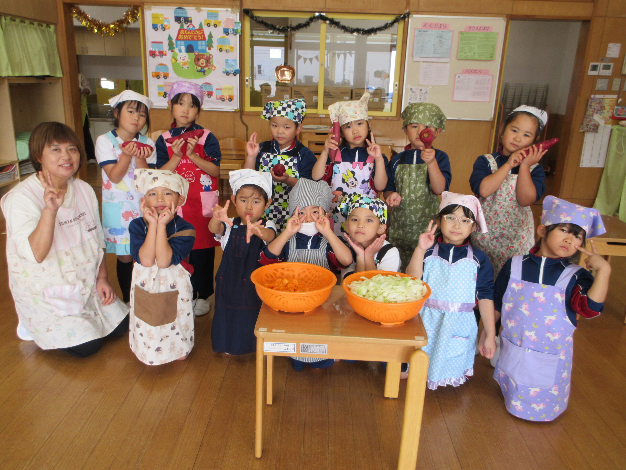前日に年長さんが、マルトに買い物に行き、材料を購入