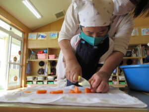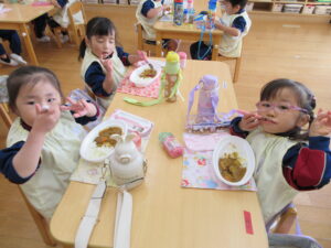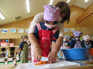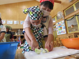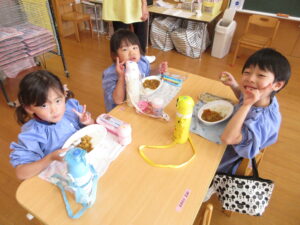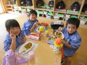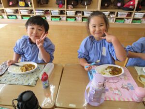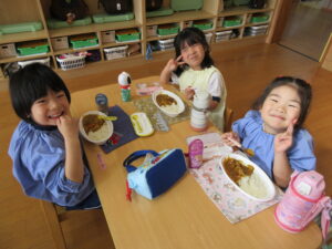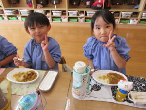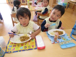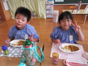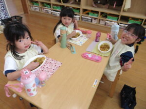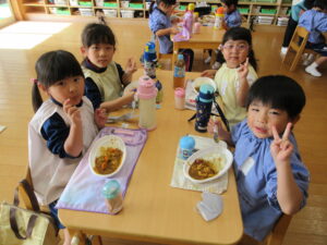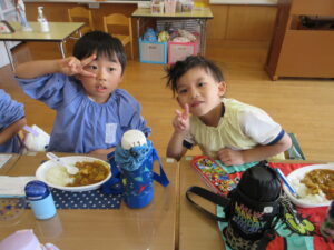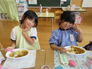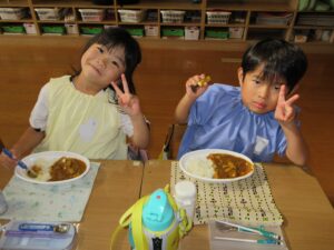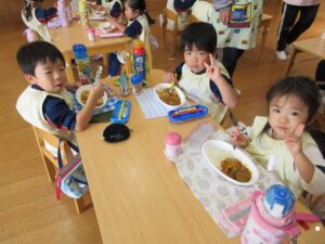 年長さんが切ってくれた野菜が入ったカレーは、おいしくて