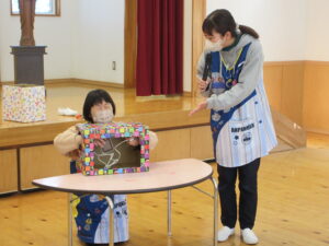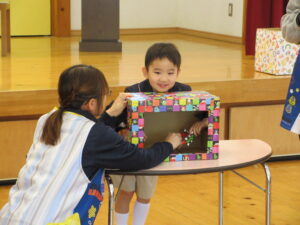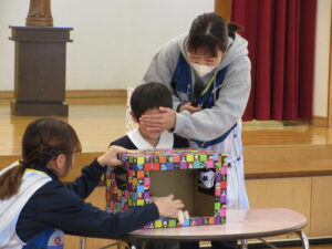 (始業式の中のお楽しみ『箱の中身はなんだろう⁉️』に挑戦中‼️)