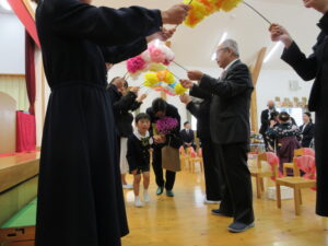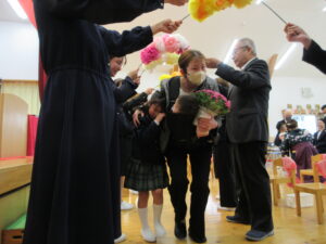 【先生たちから『おめでとう』の言葉とお花のアーチで涙あふれる退場🌸】